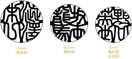個人の存在の証しとして、その人の運命を司る最も重要な印で、社会的にも最も重要な役割を果たします。一般的には、姓・名のフルネームを彫刻致します。